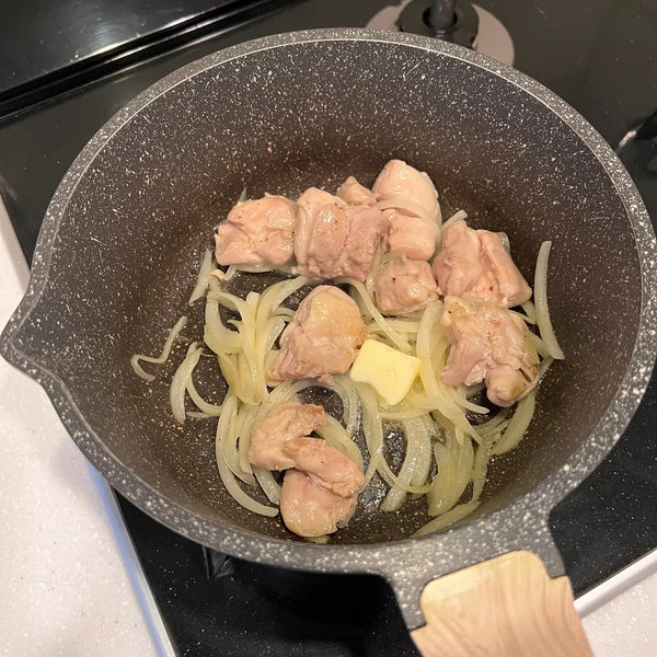 If you don't have plans to visit Japan, you can still enjoy our Chicken Doria at home! The main ingredient is chicken thigh, and the process is not difficult, so feel free to make it for your lunch or dinner. Once you remember how to make Chicken Doria, you will be able to make various Dorias. You can enjoy arrangements such as substituting chicken thigh for seafood or shrimp and replacing butter rice with ketchup rice, etc.
