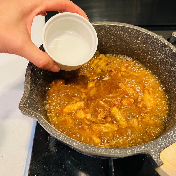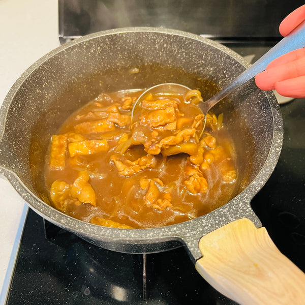 As you might notice, curry udon sauce is thicker than regular soup. To achieve this texture, adding potato starch is a common step, though it can be a bit tricky. It’s important to find the right consistency without making the sauce too thick or gummy.