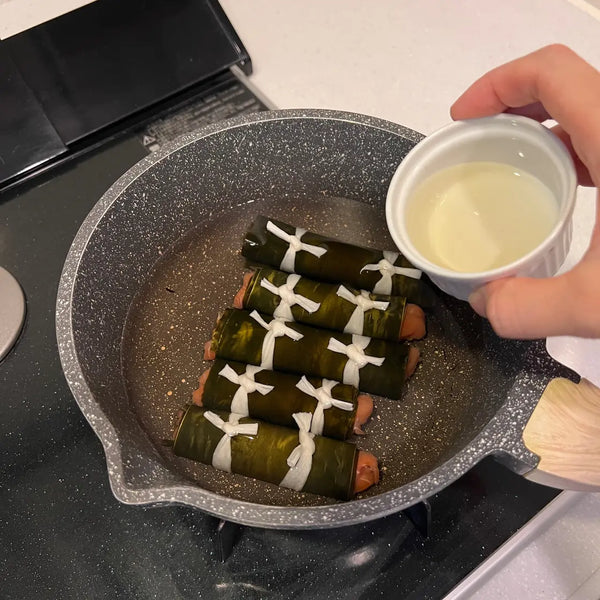 The Kombu roll is crafted using Kombu, fish, and Kanpyo (dried gourd strips). The fish is wrapped with Kombu and secured with Kanpyo. The Kombu roll is then simmered in a soy sauce-based seasoning, allowing you to savor the Umami flavor of Kombu and fish infused with the savory taste of soy sauce.