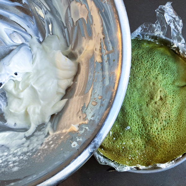 The original Mille Crepe Cake is made with plain crepes, but as Japanese love Matcha, we naturally make a matcha-flavored version of the crepes!