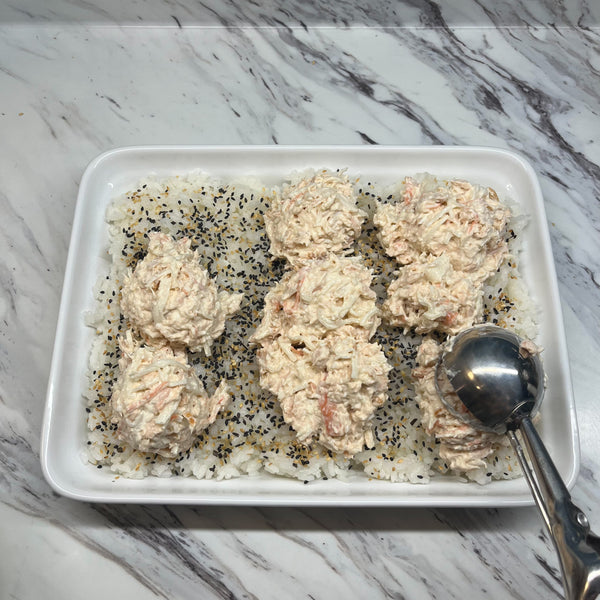 At its core, sushi bake starts with a layer of seasoned sushi rice, topped with a creamy, savory mixture made from flaked cooked salmon and shredded imitation crab sticks, usually mixed with Japanese mayo and sometimes cream cheese or sriracha.