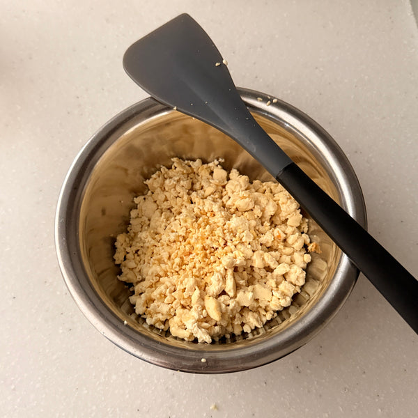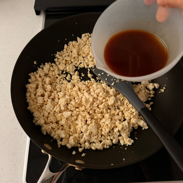 - Stir-fried crumbled tofu - Heat a pan, add dehydrated tofu, crumble with a spatula while cooking, and then mix in the seasoning.