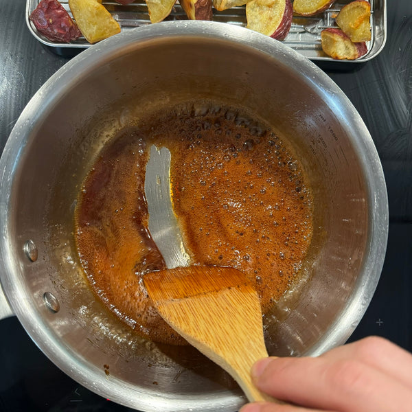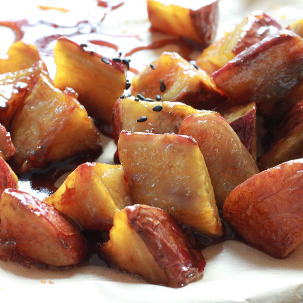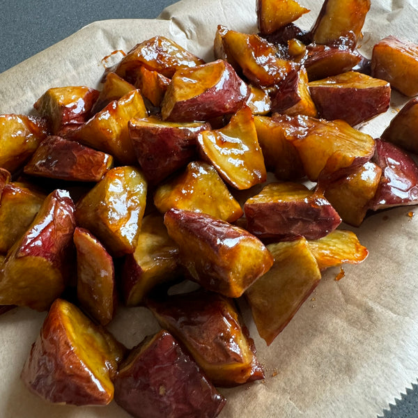 The flavor is a delightful combination of candied sweetness and the earthy taste of sweet potatoes. The candy coating is flavored with sugar, mirin, and soy sauce, delivering a harmonious mix of sweet, salty, and umami flavors.