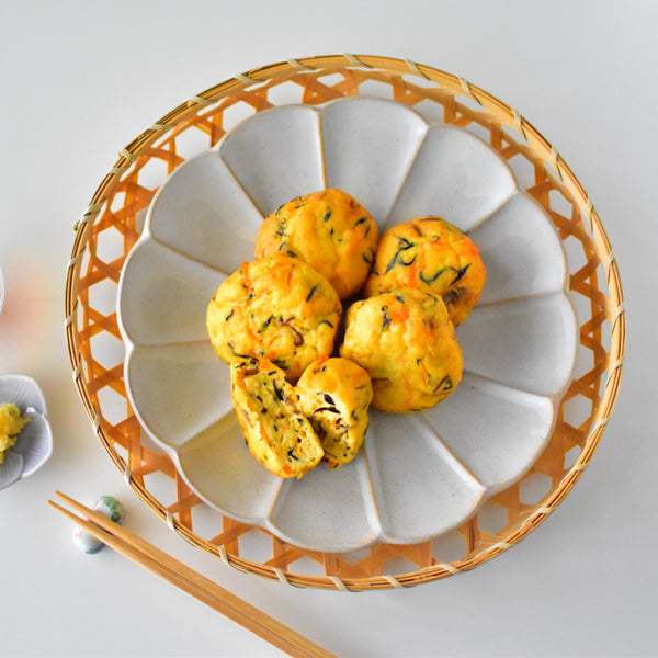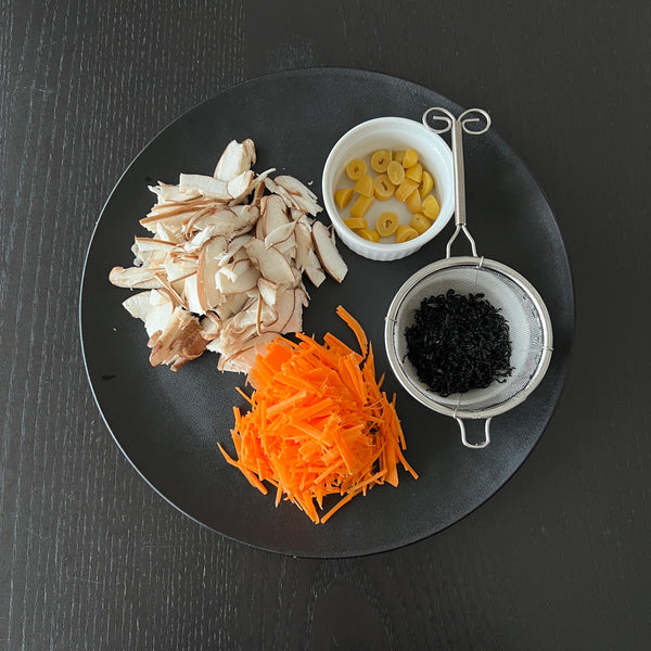 • Incorporate ingredients that you like into Ganmodoki: We are using carrot, shiitake mushroom, hijiki seaweed, and ginkgo nuts in our recipe, but you can also choose from other ingredients such as burdock root, lotus root, konjac, and kombu seaweed.