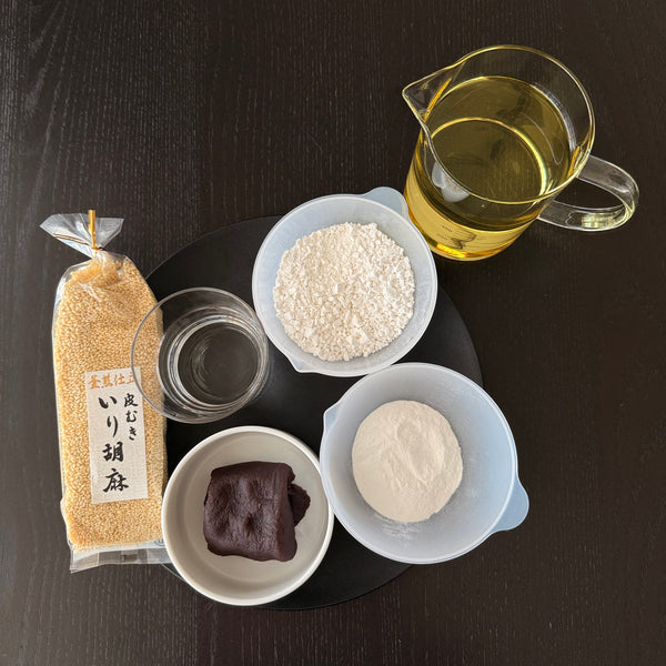 In this recipe, I’ll show you how to make goma dango at home using shiratamako (glutinous rice flour), joshinko (non-glutinous rice flour), smooth azuki bean paste, and sesame seeds. You can make it with only shiratamako, but adding joshinko gives an extra chewy bite. It may look challenging at first, but it is fun to make, so please follow the steps one by one.