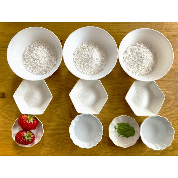Usually, salt-pickled Sakura and Yomogi are used to color the dango, but they are quite hard to find outside of Japan. In our recipe, we suggest using Strawberries and Matcha for coloring the dango. They are perfect substitutes for the colors, and they make the dango very tasty.