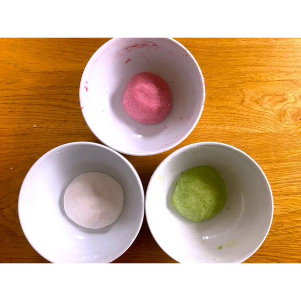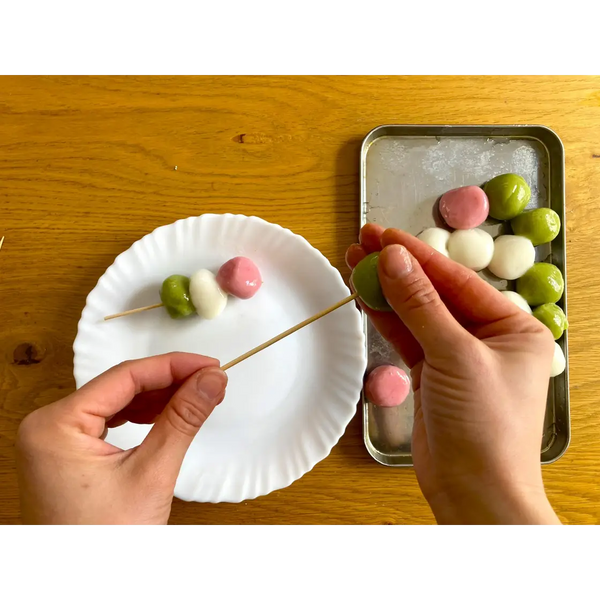 There are many different kinds of dango in Japan, but hanami dango in particular has the texture of sticky mochi (rice cake) but is typically a bit firmer and springier than mochi. We are using Shiratamako flour for our recipe because it gives the dango the perfect chewy texture and is easier to find outside of Japan than other kinds of dango flour.