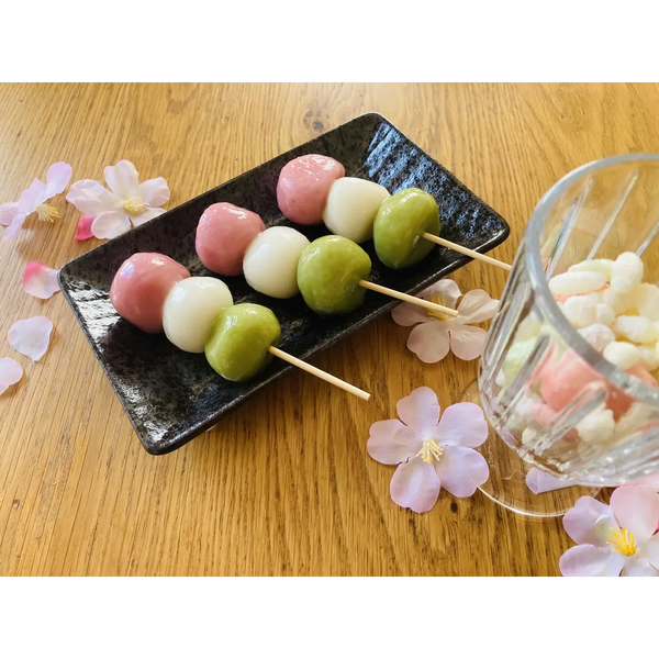 “Hanami Dango” is a special type of Japanese dango, also known as tri-colored dango. The dumplings are colored pink, white, and green and are served on a skewer. Hanami dango is a traditional Japanese sweet that represents the coming of spring.