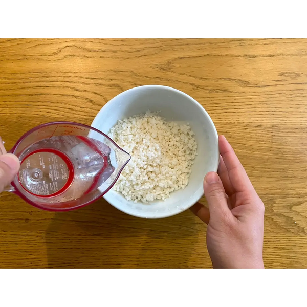The traditional way to make Domyoji flour is to soak the sweet glutinous rice overnight, then steam it for 30-40 minutes, dry it for one day, and finally crush it. You might be thinking that this takes too much time, but don’t worry! We’re going to share a special way to make this glutinous rice flour by using the microwave.