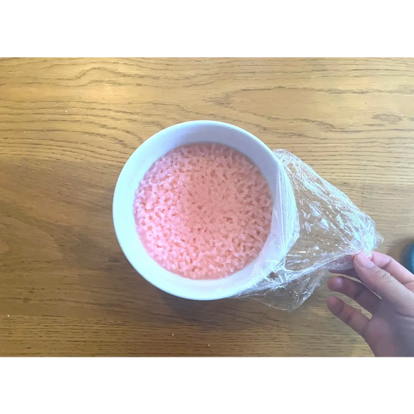 Not only does using the microwave save time, but this sakura mochi still comes out tasting great!