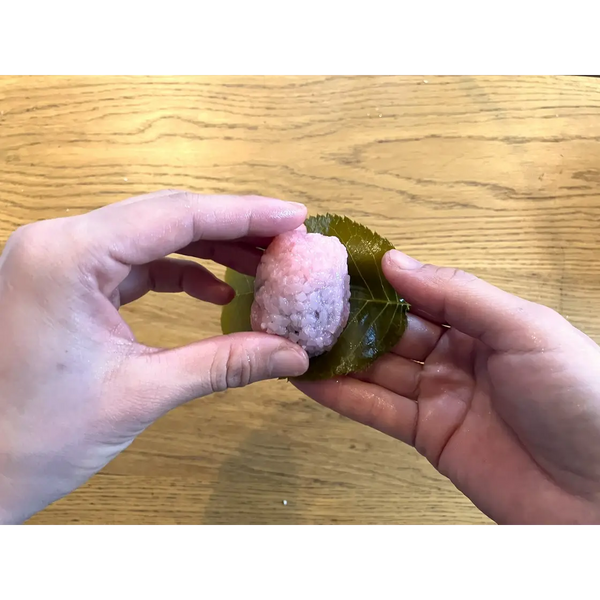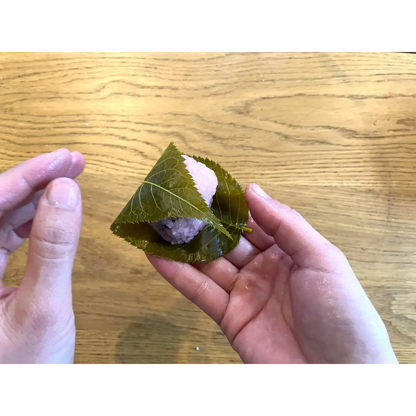 The Kansai sakura mochi style is much chewier than the Kanto style. It is a bit like eating a sweet rice ball filled with red bean paste.