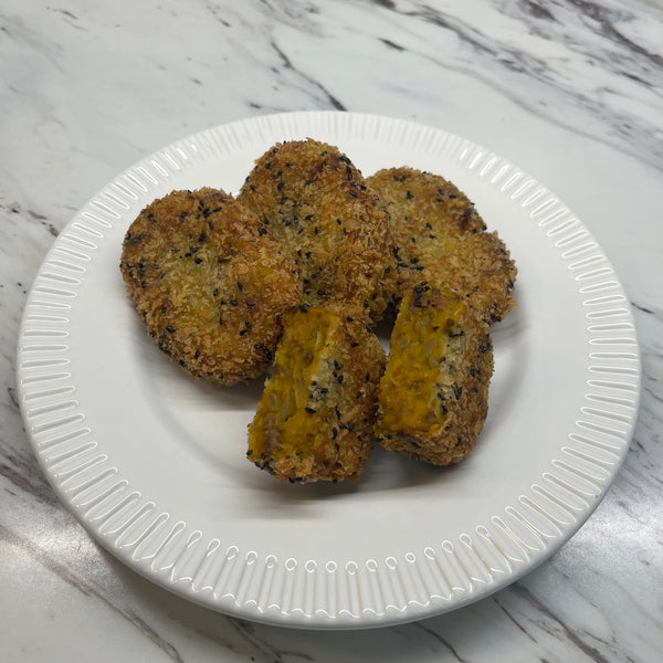 The mixture is shaped into cute little patties or ovals, coated in flour, dipped in egg wash, and rolled in panko breadcrumbs, creating a crispy, golden exterior when cooked. They can be fried to achieve a crunchy, golden finish or baked for a lighter alternative.