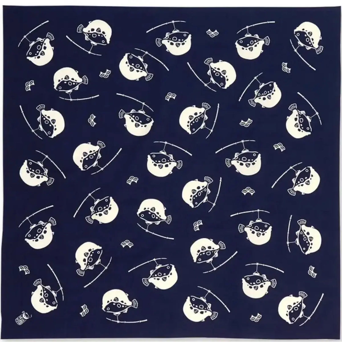 Furoshiki Fugu Puffer Fish Large Blue Cotton Wrapping Cloth 90cm